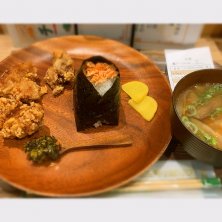 ビックカメラ内のラクマで前に使ってたiPhone SEを買い取ってもらいました。ガラスに息子がつけた傷がガッツリあるので期待はしてなかったけど、クーポン使ったりで9,600円になりました。ウマー。 お腹が空いたので🍙食べて帰って来ました。 唐揚げ三つと🍙一個と味噌汁で790円➕税? 高いおにぎりだったので追加料金発生924円税込 美味しかった