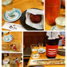 油かすコロッケ🥔と鍋島🍶 いちじくの天ぷらと赤とんぼ🍶 秋刀魚の塩焼き🐟と越路乃紅梅🍶
