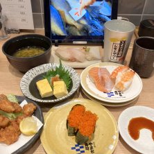 たこから、出汁巻き、とびっこ、大トロサーモン、海老、地魚三貫かわはぎ、ひらめ、かれい あおさのみそ汁、レモンサワー まだいと中落ち軍艦も行ってしまった やりすぎた💸💸💸 ドタキャン続出で全然集まらず、しかしミニゲームがなかなか脳トレになったフットサル後に 三連休の最終日だからかファミリー多くテーブル満席、ぶらり一人客はゆうゆうカウンターで 隣の焼肉店ガラガラで気まずかいくらい