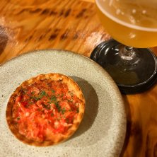 【サーモンルイベのカルパッチョ】 一仕事終えて池袋ニキと昼飲み行脚。 まずはEndebour to goに行って軽く試飲してからこちらへ。 フードはこれとソーセージで。 ルイベの食感が楽しいね。 #十字街 #函館市 #北海道