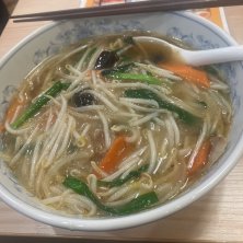 焼きそば。 オーソドックスだけど、麺ツルツル、野菜シャキシャキでおいしい。スープついてくるのも嬉しい。 スマホでネットオーダー、そのままクレジット決済とか何気に進んでいる。