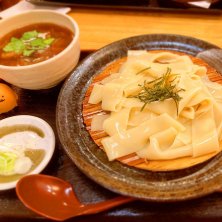 草津温泉でひもかわうどん 舞茸天ぷらひもかわうどん
