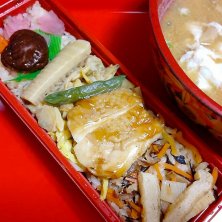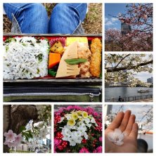 本日のお花見🌸とお弁当 しらすと若布のご飯と鶏の七味焼き弁当 ☀️暑かったですねぇ💦