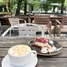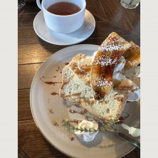 昔のお守りをお返しに 祖父の月命日に来れて良かった 天気も良いしテラスのあるカフェへ カフェラテ頼んだらものすごい作品が出てきた しかも飲み進めても崩れないし(^^;; カシスとバニラのティラミス ¥800 カフェラテ ¥720 セットで¥200引き 2023.06.04