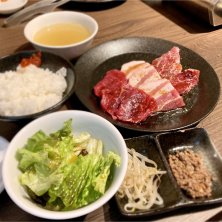【焼肉ランチ】 午前中の会議で、クォーターの目標達成したら… ・皆んなでお肉食べに行きたい ・サムギョプサルじゃなくて牛がいい とかのコメントがあったため 頭の中が焼肉でいっぱいになってしまい、堪らず今日のランチは焼肉にしようか!って言ったら テレワークの人以外会議に参加した全員がついてきた😝 前から行ってみたかったこちらの焼き肉屋さんは路地裏にあるのでそれほど混んでなく しかもリーズナブルなプライスで美味しい焼肉ランチが食べれた!😋 あまりにも美味しくて焼いてる写真は撮り忘れた 😅