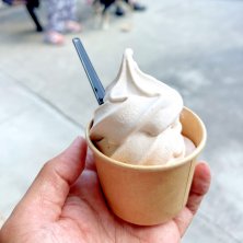 ・尾瀬夢豚うどん ・もりうどん ・天ぷら 茄子 ちくわ ・花豆ミックスソフトクリーム 2023/06/18