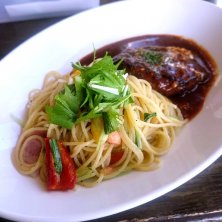3丁目パスタ(ペペロンチーノ) TPハンバーグ