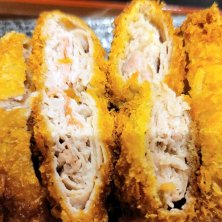 "プレーン・🧀チーズ・キムチーズ・梅しそ 黒こしょう・🧄ガーリック 柚子こしょう"と7つのフレーバーの内 2つを選べる "キムカツハーフ&ハーフ❤️ 揚げたての🐖"キムカツ" 薄い肉の重ねでも ジューシーだけど 軽い感じが相変わらずで良い感じ❤️ (上)とろ~り"🧀チーズ"はコクが増すし (下)"梅しそ"はさっぱりと❤️ 2種類の味が楽しめるのも嬉しいですね❤️