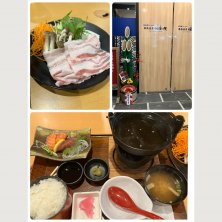 バレー終わりに、 幕張温泉♨️へ〜 今日は、コート準優勝で、賞状とボールを貰いました✨ そしていつもの しゃぶしゃぶ御膳 サーモンの刺身が激うまでした〜 しゃぶしゃぶは、量がたっぷりでいつも汁と固形燃料をお代わりします〜😆 美味しいし、腹一杯になりますー♪♪♪ 今日は、最初からご飯を大盛りにしました🍚