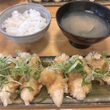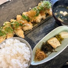 おはようございます\(//∇//)\ 台風の影響か、、、雨が降りそうで降らず、微妙に湿度高め😅 こんな日は、ランチからしっかりめに💪 普段はせんべろセットしか注文してことないのですが、気になっていた定食を頂きます 鶏天おろしポン酢定食 大きめの鶏天が6切れ ご飯、味噌汁、香の物 さてと、今日もぼちぼちとやりましょうかね〜🔛