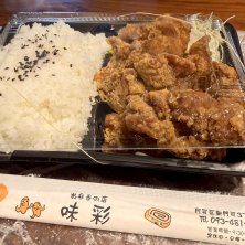 久しぶりの蓋浮き上がり系、デカ盛り! 味彩の唐揚げ弁当!550円! 創業1996年 創業以来変わらぬタレと味👍 美味しいな〜 唐揚げの下にスパゲティとキャベツの千切りサラダが隠れています😋