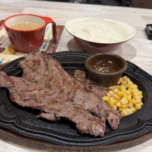 ランチ! 先週食った焼肉より肉食った感する。 240gだから量は同じくらいだと思うけど。 ここの肉は薄いから、いつも鉄板の熱でウェルダンになってしまうんで焼き方レアにできるか聞いたら対応してくれた。けど今日は鉄板が熱くなかった!笑 さすがチェーン店あるあるのバラツキ!笑 ここはガーリックスープか美味いんだよなあ(º﹃º )