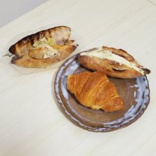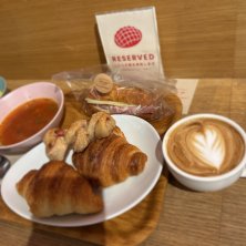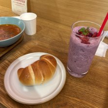 朝ごはん クロワッサンとトマトのスープ カフェラテ
