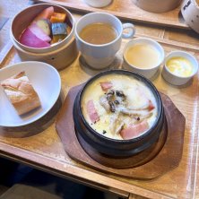 お正月休みの最終日、くずはモールにて仲良しの友人と新春ランチ🤗 ☆釜焼きチーズクリームパスタセット🍝 ※ベーコンときのこの濃厚ゴルゴンゾーラソースのパスタ🥓🍄🟫🧀 ※自家製はちみつドレッシングのホットサラダ🍠🎃🥕 ※パン🥖 ※スープバー🥣 ※チーズとはちみつのデザート🍯 チーズ&はちみつ好きには堪らないセットでしょ? 彼女とは自宅も近所でしょっちゅう会っているのに毎回違う会話で盛り上がります😆💕 今日も楽しい時間をありがとね👍✨