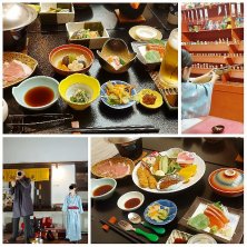 伊香保温泉♨️2回目宿泊の旅館の晩ごはん。お子さま御膳はボリュームあり、殆ど食べない姫。ばあ様も残すのでおばちゃん(我が姉)と相方でせっせと食べると言う...ハハ(私)はまったり水芭蕉🍶飲みながら2人に託す。 食後は石段街でパフォーマンスがあるってんで見に行った。呼ばれてパフォーマンスに参加出来て楽しそうだった。