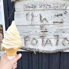 長沼温泉入ってからの、あいちゅランドで抹茶のソフト(写真なし)経由の→ りんごとバニラのミックス🍦