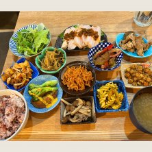 10種類以上のデリから選んだ3種は、ひよこ豆と旬野菜のスパイス炒め、アサリとキャベツのハーブ和え、ソイササミとブロッコリーとジャガイモの何か😅それにサラダ、雑穀米、スープが付く。デリには肉料理もあるから、男性でも満足できそう。既に2周年だそうで、こんな良い店もっと早く気づきたかったよ。