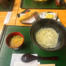 2月4日(日) 1人外食は久しぶりヽ(*'▽'*)ノ 美容院を午後から予約してたので 早めに我が家を出て、たまには外食ランチをと… 麺類が食べたかったので、🚗³₃走らせてギリギリまで悩んで鹿児島大学近くの薩摩製麺所へ◥█̆̈◤࿉∥ 駐車場は🈵に近かったけど、座席に空きがあってホットしましたε-(´∀`;)ホッ ベーコンバター釜玉と直前まで迷ったけど 日替わりの“とろろ昆布うどんと鶏天玉子丼”にしました😊 優しい甘めのうどんつゆに丼のタレの味がバランスよく、柔らかい鶏天も良かったです😊