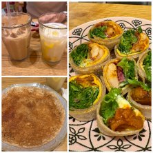 タンドリーチキンロール アイスチャイ マンゴーラッシー 次女とおやつ シフォンケーキセットが900円 タンドリーチキンロールセットが1000円 ケーキセット2つ頼むよりチキンロールを半分こ