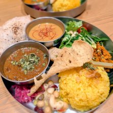 プレートランチ。海老カレーとレンズ豆カレー。