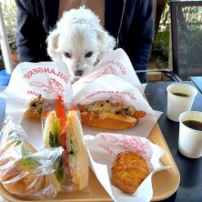 お散歩がてらbrunch🥪 サンドウィッチ きのこのタルティーヌいただきました😊 🐶OKのテラス席があるのも有り難い
