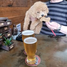 今日も天気が良くて暖かかったので、最近できたドッグフレンドリーなBreweryに行ってきました。オーナーから犬用ビスケットをもらってご機嫌な子犬🐶