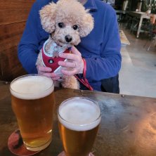 ウォーキング中、わんこお気に入りのBreweryへ。オヤツをもらえるので、わんこ自ら角を曲がってお店を目指し、近づくに連れて早足になります🤣 Berryフレーバーのビールが美味しい😋