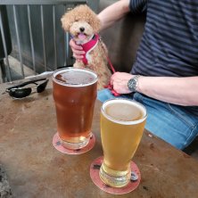 お散歩の後、わんこのお気に入りのBreweryへ。早めのディナー。