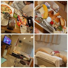 千葉県山武郡、ユーティリティホテルクーにワンコと ちょい旅🐶 夕飯が無いので 特上寿司出前しました🍣 ローストビーフとマカロニサラダは作ってきました。 カラオケ歌い放題なのでストレス解消になります🎤