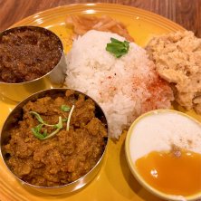 チキンカレーとポークチリキーマの2種盛り🍛 ライスが普通のご飯になってました(諸事情で日によってターメリックと白ご飯にしてるとのことです) シャバシャバ系のチキンカレーと程よくスパイシーなキーマは安定の美味しさです👌