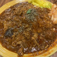 チキンカレーとポークチリキーマの2種盛り🍛🐔🐷 今回のチキンはコクのある味わい、ポークチリは挽肉の塊がゴロゴロ入って食べ応えあります👍