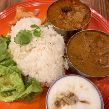 ポークチリキーマとココナッツ野菜カレー2種盛り🍛 今回も安定の美味しさ、野菜カレーは大きなカボチャがゴロリと入ってました✨