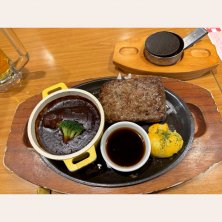 カットステーキ まだ本調子じゃないので 肉普通です(肉2倍もあります) 猫型配膳ロボが料理は運んでくれます ビールは店員さんが持ってきてくれます お支払いは電子マネーが使えます