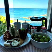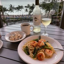 金曜日にハワイへ来ました。 出発前日に主人がギックリ腰に😱 ドタキャンも考えましたがロキソニンと痛み止めの塗り薬で症状を抑え、なんとかハワイ入りできました。 重いスーツケースの上げ下ろしも自分でやらなくてはならず、わたしもギックリ腰になりそうです。 何事もなく2週間過ごせますよう祈るだけです🙏 ホテルにチェックイン前に買った最小限の食料品で作った朝ごはん。 ラナイでいただけば何よりのご馳走です。
