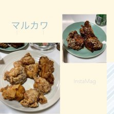 中庄のタイムの横に出来た唐揚げの店 元祖 からあげ本舗 マルカワ 醤油・塩・旨だれの3種類をお買い上げ 1個が7〜8cmの大きさ ビールがすすむくんでした😋