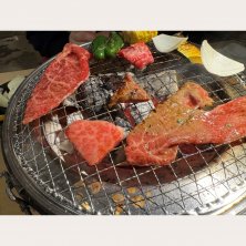 タレ焼きの焼肉盛り合わせ ちらっと見えてるのは豚バラ