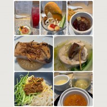 【11月の薬膳フルコース】 〇山芋のメレンゲ仕立て 〇お野菜のパフェ 〇十全大補湯 〇ブリ大根の鮟肝味噌焼きロッシーニ風 〇参鶏湯ロール 〇台湾風肉味噌混ぜそば 〇柿のプリュレ ●自家製赤紫蘇ジュース ごちそうさまでした😋