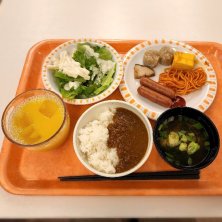 朝ご飯はホテルのビュッフェ。種類は少ないけど、一通りの料理は揃ってた。