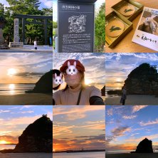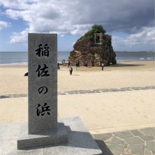 お宿にチェックインした後、出雲大社をサラッと通り過ぎて、稲佐の浜へ夕陽を見にてくてく歩く。 途中で出雲阿国のお墓参り。 夕陽を30分くらい浜辺で眺めて黄昏ました。