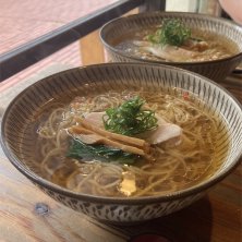 大雨上がりの鎌倉は、ムシムシ ジメジメ。 汗ばみながら、散鎌しているところ「すだちそば」の看板に惹きつけられて、初めてのお店を訪問。看板も無く、和風のおしゃれな構えでお店の中に入ると和風だしの良い香りが漂います。 すだちの薄切りと大根おろしが載ったシンプルなどんぶり。スープを飲むと「❓」、麺を食べるとさらに「❓❓❓」。お蕎麦屋さんと思って入ったら、ラーメンが出てきた😲 とはいえ、スープはしっかり和風だしが効いていて、麺の歯応え喉越しが良く大変美味しくてスープまで完飲しました★