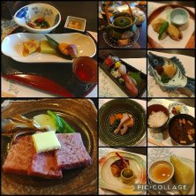 昨日は下呂温泉♨️で1泊🌛飛騨路会席✨巨峰の食前酒、先付のお浸し、秋🌾を感じる前菜、鱧と百合根の土瓶蒸し、御造里、蓋物はプリプリの海老、進肴は飛騨牛の陶板焼🐮、焼物、栗🌰を使った揚げ物、留肴、食事、水物、と、お腹満腹コースでした😍🎶