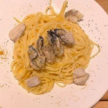 月島オイスター倶楽部、また行っちゃった〜(^^) アツアツのカキフライはこの後すぐに出てきたよ!パスタはしらすとキャベツのペペロンチーノ🍝 ここは昨日の月耳と系列店だけど、おいしい!