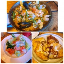 娘と遅めのランチ 娘初めてのパエリア、美味しいと絶賛 鶏肉のカツレツ,シェアしで食べました