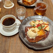 自家製塩キャラメルジェラートと 季節のフルーツフレンチトーストと アメリカンコーヒー