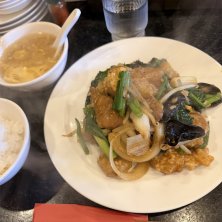 お昼ご飯 A.豚はらみと豚ガツと蛸と野菜のトウチ炒め 今日も美味しかったけど、歯応えがいい物ばかりで 顎が疲れた>_<