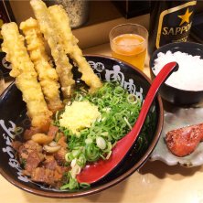 実は博多はうどんも有名だというので他に行こうと思った店があったが定休日で櫛田神社近くの「肉肉うどん」へ。 ここは替え玉が出来るお店らしく多くの博多っ子は替え玉をしていた。しかも決まってそばを選ぶ。面白い文化だ。 九州らしく濃いめの汁で最後に残った肉と汁をご飯にかけて雑炊風にするがこっちの方が美味しいんじゃないかというくらい旨かった。 明太子定食にゴボ天とネギをトッピング。 きざみ生姜が大量に乗っているのでとても体が温まる。