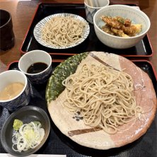 退院して初めての美味しいお蕎麦! いつも寄る梅丘駅すぐのそば勘さんで。 手前は私、おためし。胡麻たれと蕎麦梅雨2種類。 奥は天丼セット。 ここは週末でもセットもあるからありがたい。 店主は友人。お酒やおつまみも色々そろってますよーー