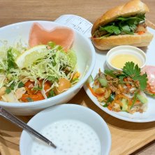 バインミーがメインのベトナム料理のチェーン店、BANH MI XIN CHAO(バインミー シンチャオ)の生春巻き。 モチモチ食感のライスペーパーで作られた皮の中に、海老や野菜などを入れて包んで作られた春巻きで、ベトナムを代表する料理の1つです。ベトナム語でグォイ クオンと言います。 お得なセットのAセット、バインミーセットに含まれたので食べられました。皮と野菜や海老などの相性が抜群で美味しかったです。 自分は2009年にベトナムのホーチミンに行った事が有り、色々な料理を食べた事が有ります。