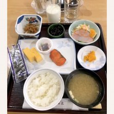 本日の朝ご飯 今日も元気だご飯が美味しい😋 和食膳😋 鮭、玉子焼き、納豆、お味噌汁、ご飯🍚 美味しく頂きました♪♪♪ 昨夜の雨も止み、穏やかな函館の朝です。 昨夜は風も強くて嵐の様なお天気でした。 気温8度と言っていたけれど強風により体感温度はそれよりずっと寒く感じました🥶 お天気回復して良かった😊 今日も頑張ろう! 行って来ます!