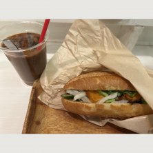 お昼ご飯 ◎たっぷりバインミー 会社からお昼に家に移動ーの途中にランチ。 行きたいところは行列で即諦めました。 暑くて溶けちゃうよーー🫠 このバインミー、焼き豚に鶏チャーシューにもりも入ってます。撮り方が…下手🤣 美味しい😋 定食も美味しそうだったなー さて家帰って…アイスでも食べながら頑張りますかぁ。 ごちそうさまでした♡